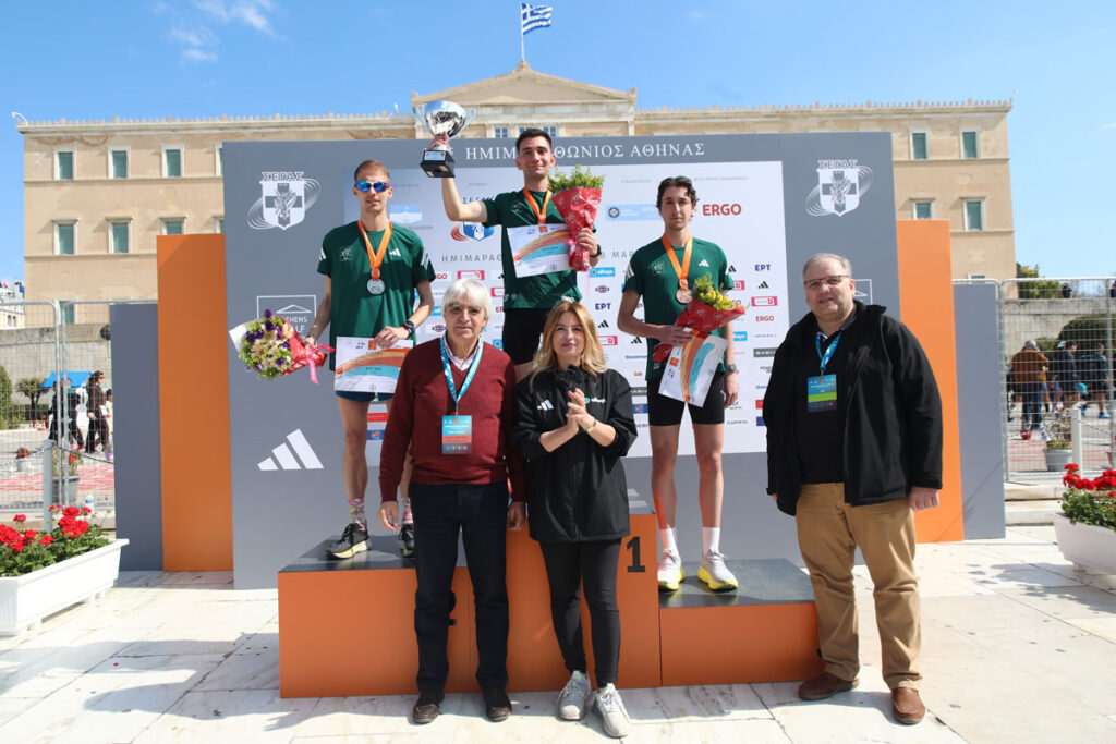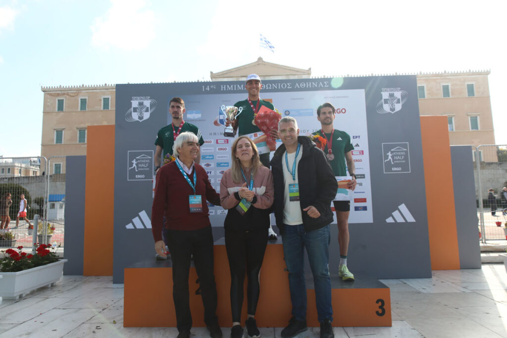 Ακολούθησαν οι απονομές στους νικητές και τις νικήτριες των αγώνων. Πρώτοι ανέβηκαν στο βάθρο οι άνδρες νικητές του Πανελλήνιου Πρωταθλήματος και της γενικής κατάταξης, με τις απονομές στους Παναγιώτη Μπιτάδο, Νίκο Σταμούλη και Γιώργο Σταμούλη να κάνουν για τον μεν Πανελλήνιο Πρωτάθλημα αντιστοίχως ο δήμαρχος Αθηναίων Χάρης Δούκας, ο αντιπρόεδρος του ΣΕΓΑΣ, Κώστας Κεντέρης, και η διευθύντρια Εταιρικής Επικοινωνίας και Βιωσιμότητας της Ergo Μαρκέλλα Τσουρουγιάννη, για τη δε γενική κατάταξη η πρόεδρος του ΟΠΑΝΔΑ, Ρωξάνη Μπέη, ο γενικός γραμματέας του ΣΕΓΑΣ, Γιώργος Γιατρουδάκης, και ο εκπρόσωπος Τύπου της Περιφέρειας Αττικής, Κωνσταντίνος Ζώμπος.