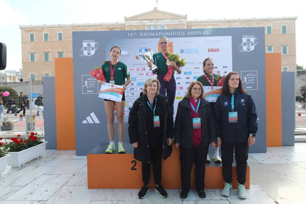 Στις νικήτριες του Πανελλήνιου Πρωταθλήματος και της γενικής κατάταξης, Αναστασία Μαρινάκου, Μελίσσα Αναστασάκη και Σταματία Νούλα, την απονομή έκανε αντιστοίχως ο πρόεδρος της Ελληνικής Ολυμπιακής Επιτροπής, Ισίδωρος Κούβελος, η πρόεδρος του ΣΕΓΑΣ, Σοφία Σακοράφα, και ο communication specialist της Ergo Βαγγέλης Λεμπέσης, και οι β΄ ειδική γραμματέας Ευγενία Νικολετοπούλου (ΣΕΓΑΣ), Κυριακή Γαλάνη, μέλος ΔΣ του ΣΕΓΑΣ, και Ξένια Αργειτάκη, μέλος ΔΣ του ΣΕΓΑΣ.