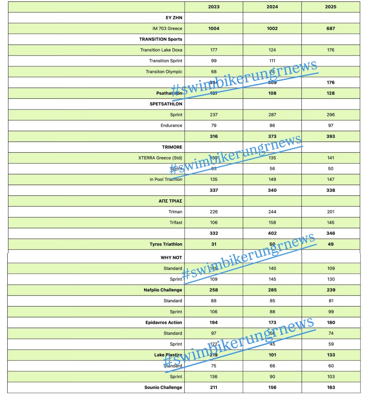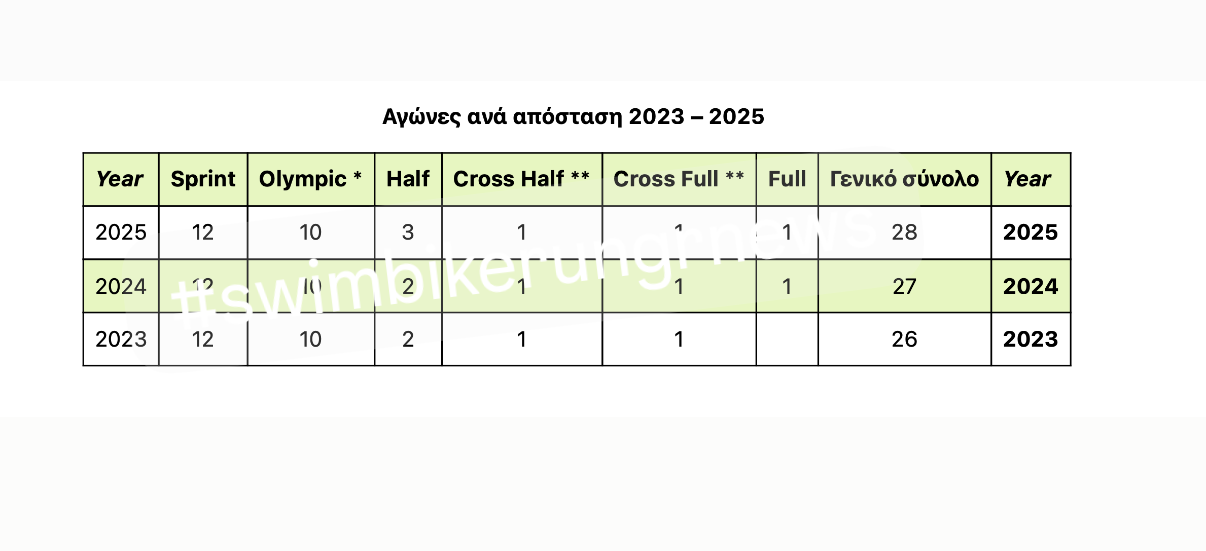 - Μιλάμε φυσικά μόνο για τρίαθλο, όποτε αγώνες Open Water Swimming, Aquathlon, Aquabike … απλά δεν υπάρχουν στην λίστα..
